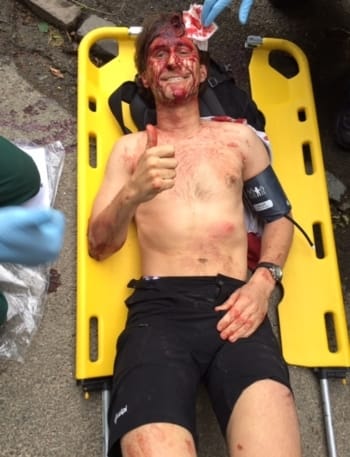 In the clinic, you often meet fascinating people and hear interesting pain stories. Phil is one example. A highly charismatic and talented amateur jockey, he came off a bicycle at great speed and hit a tree. He fractured his skull, sternum and sustained a complex spinal fracture, which was operated on shortly after the accident. He also has a bruised heart, spleen and other organs. He recalls;