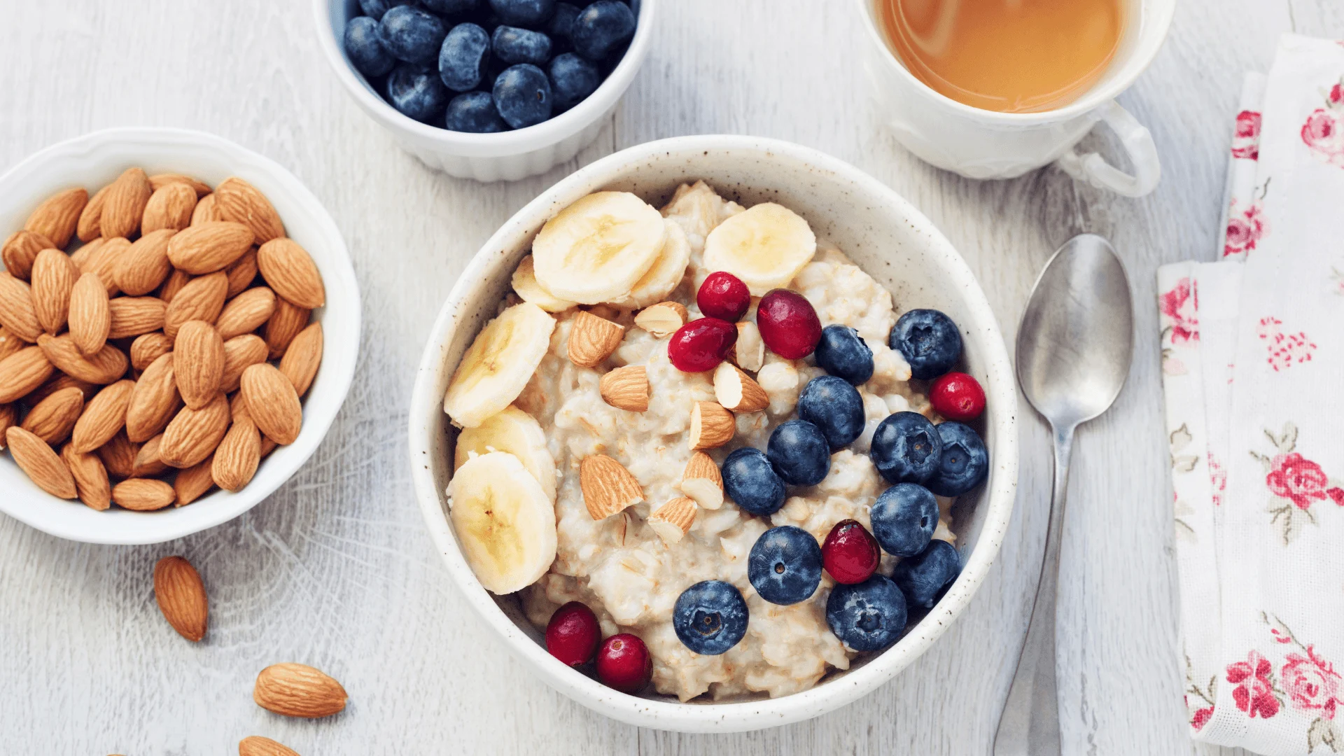 - Porridge made with milk and topped with fruit and nuts